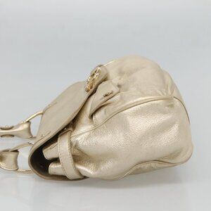 Salvatore Ferragamo Gancini Bag Leather Champagne Gold Gold Auth