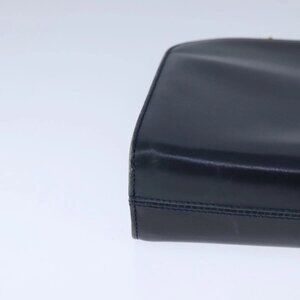 Salvatore Ferragamo Gancini Chain Shoulder Bag Leather Navy Gold Auth 105376