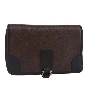 Salvatore Ferragamo Gancini Clutch Bag Leather Brown Auth ar12841