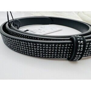 Salvatore Ferragamo Gancini Crystal-Embellished Black Nero Leather Belt $580 One Size New with tag Dust bag included
