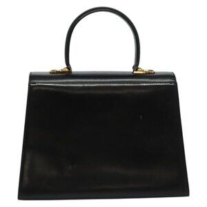 Salvatore Ferragamo Gancini Hand Bag Leather 2way Black Gold Auth