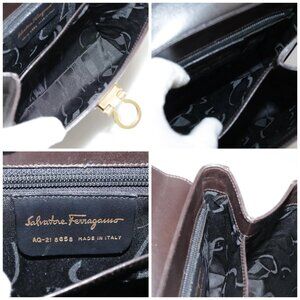 Salvatore Ferragamo Gancini Hand Bag Leather 2way Dark Brown Gold Auth 103214