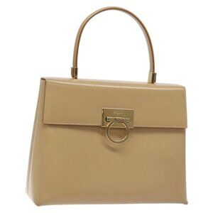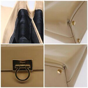 Salvatore Ferragamo Gancini Hand Bag Leather Beige Gold