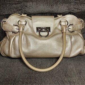 Salvatore Ferragamo Gancini Hand Bag Leather Gold AU21-5370 With Dustbag EUC