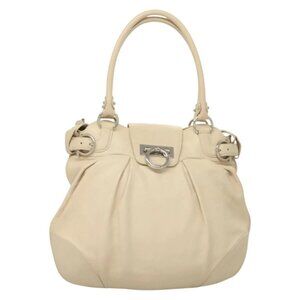 Salvatore Ferragamo Gancini Hand Bag Leather Ivory Silver Auth 132891