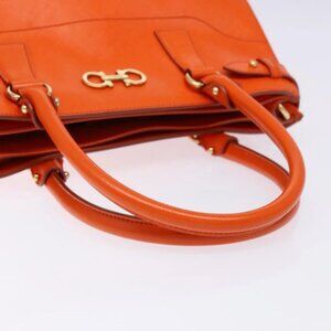 Salvatore Ferragamo Gancini Hand Bag Leather Orange Gold Auth