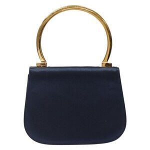 Salvatore Ferragamo Gancini Hand Bag Satin Navy Gold Auth 134768