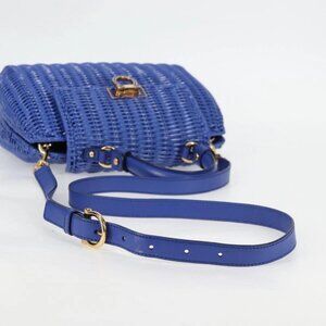 Salvatore Ferragamo Gancini Hand Bag Wicker 2way Blue Gold Auth 135631V