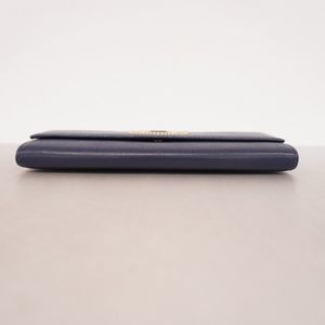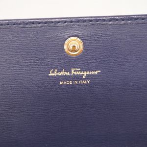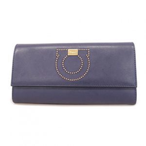 Salvatore Ferragamo Gancini Long Wallet. Leather. Navy Blue with Gold Hardware Women's