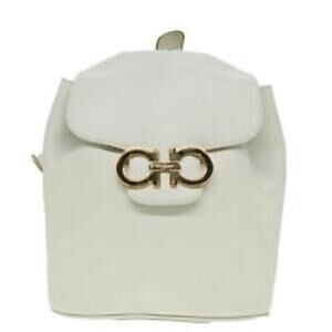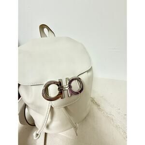 Salvatore Ferragamo Gancini Leather School Draswtring Backpack White /Silver