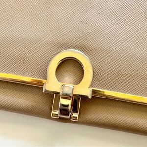 Salvatore Ferragamo Gancini Logo Beige Leather Long Continental Wallet