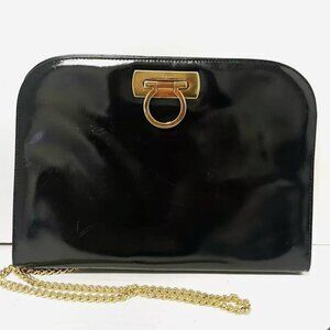 Salvatore Ferragamo Gancini Shoulder Bag Black Leather