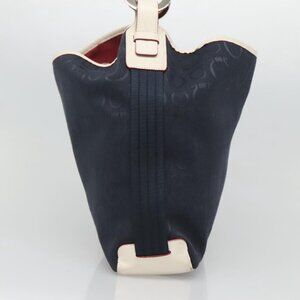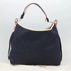 Salvatore Ferragamo Gancini Shoulder Bag Canvas Navy Silver Auth