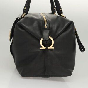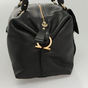 Salvatore Ferragamo Gancini Shoulder Bag Leather Black Gold Auth 124617