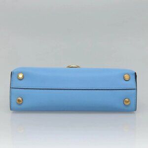 Salvatore Ferragamo Gancini Shoulder Bag Leather Blue Gold Auth 114931V