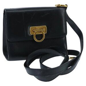Salvatore Ferragamo Gancini Shoulder Bag Leather Navy Gold Auth 96590
