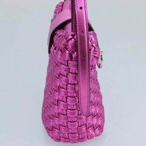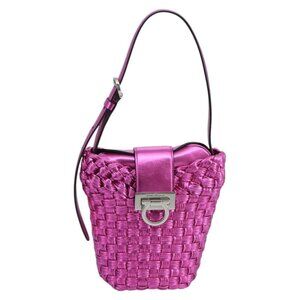 Salvatore Ferragamo Gancini Shoulder Bag Leather Pink Silver Auth 97480