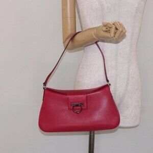 Salvatore Ferragamo Gancini Shoulder Bag Leather Pink Silver Auth bs28487