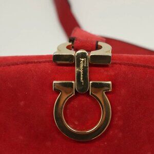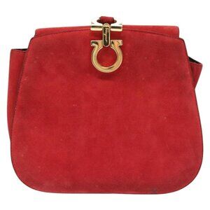 Salvatore Ferragamo Gancini Shoulder Bag Suede Red Gold Auth