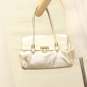 Salvatore Ferragamo Gancini Tote Bag Leather Gold Tone Gold Auth 131050