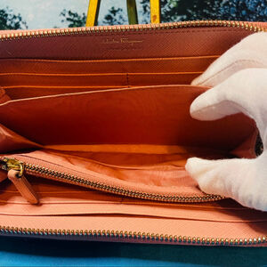 Salvatore Ferragamo Gancini Zip Around Wallet Burgundy /Pink Full Size
