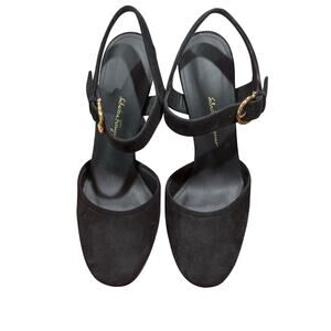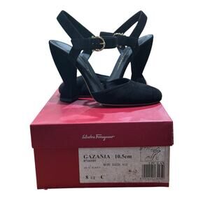 Crafted in rich black suede, they feature a sleek silhouette, a signature gold Gancini buckle accent, and a beautifully sculpted heel that elevates any outfit. These are unworn, in original box — pristine condition from someone who decided to skip the event.
