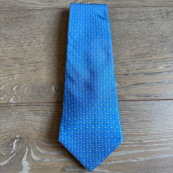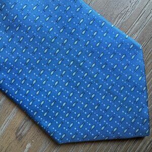 Salvatore Ferragamo Genuine Blue Fish Fishing Luxury Mens 100% Silk Tie Necktie