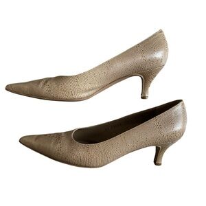 Salvatore Ferragamo Giusy Beige Lizard Print Leather Kitten Heel Pumps Size 8,5