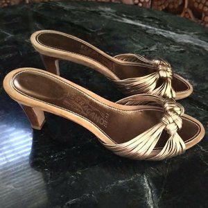 Salvatore Ferragamo Gold Bronze Metallic Tan Suede Heels Pumps 7