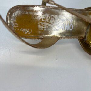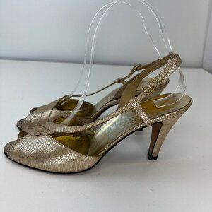 Salvatore Ferragamo Gold Peep Toe Sling Back Heels Size 8.5 Made In Italy