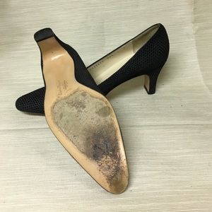 These belonged to me! Served me well for work and formal settings. Heel is low and super comfy with a nice click! :)