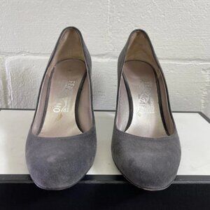 Salvatore Ferragamo Grey Suede Pump Heels Slip On Womens Size 7 US Made In Italy