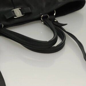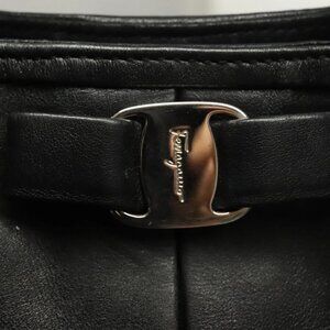 Salvatore Ferragamo Hand Bag Leather 2way Black Silver Auth