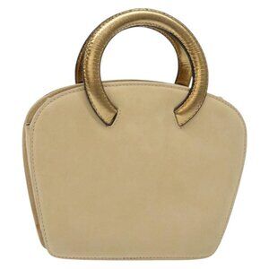 Salvatore Ferragamo Hand Bag Suede Beige Gold Auth 134611