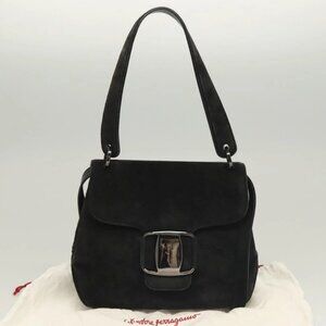 Salvatore Ferragamo Hand Bag Suede Black Silver Auth