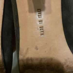 Authentic black and brown suade Salvatore Ferragamo mini heeled shoe. Great used condition.