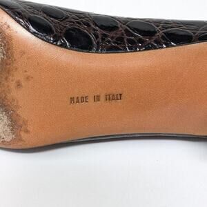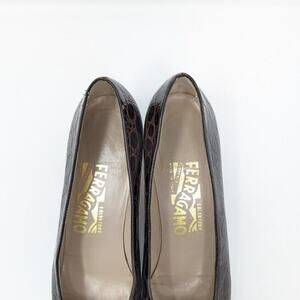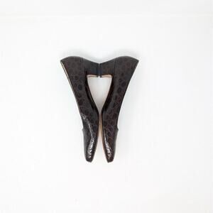 Salvatore Ferragamo Heels Brown Croc Embossed Leather 7.5 AAAA Low Block Heel