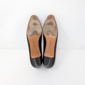 Timeless elegance from Salvatore Ferragamo. These vintage heels are crafted in rich brown croc-embossed leather with a refined square toe and classic low block heel. A rare narrow AAAA width offers a tailored fit.