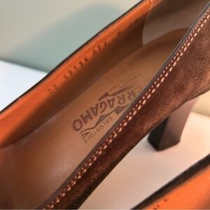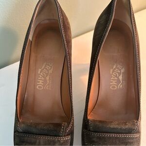 Salvatore Ferragamo Italian Olive Green Suede Heel, Loafer Style