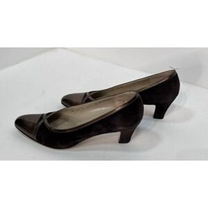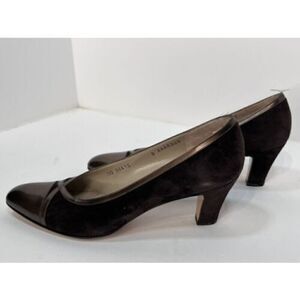 Salvatore Ferragamo Italy DQ34408 Brown Sueded Leather Cap Toe Heels Size 9AAAA.