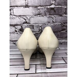 Elevate your shoe game with these stunning Salvatore Ferragamo heels. Crafted in Italy, these ivory leather pumps feature a chic black snake skin cap toe and a flattering almond toe shape. Slip them on effortlessly and step out confidently with their comfortable cushioning and mid-height stiletto heel.