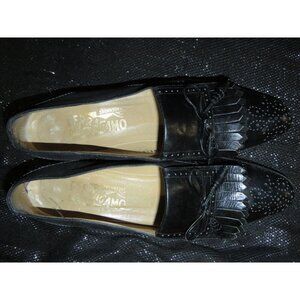 Salvatore Ferragamo Kiltie Black Italian Mixed Leather & Suede Fringe Loafers size 8