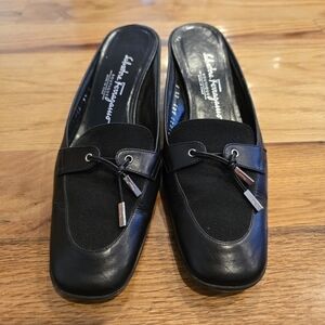 Salvatore Ferragamo Kitten Heel Mules Size 6.5 Black Leather Italian