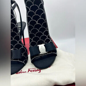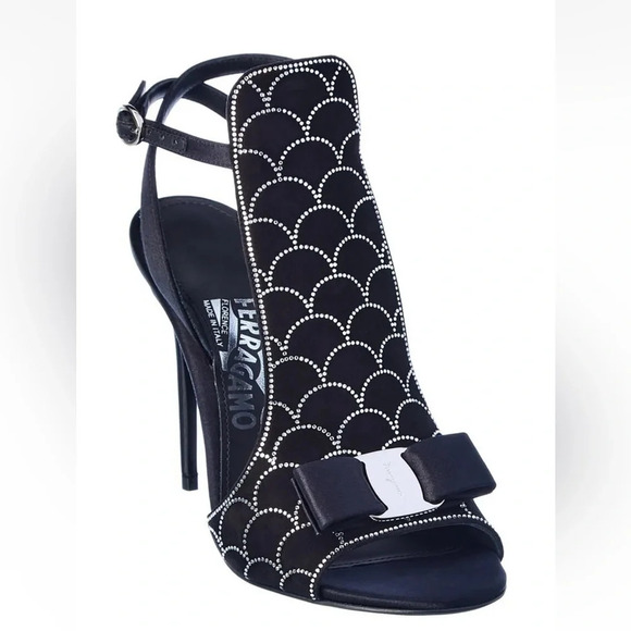 Salvatore Ferragamo Lascari Satin & Suede Rhinestone Sandal Women 6.5