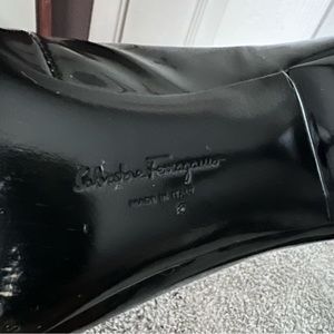 These are the leather version, not the velvet. Black leather Salvatore Ferragamo Heels. These are almost impossible to find in leather. In beautiful condition. Size 7.