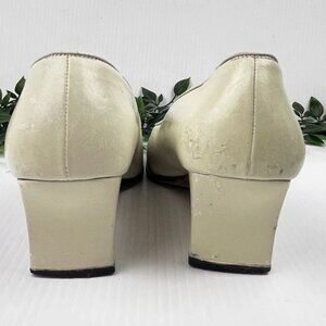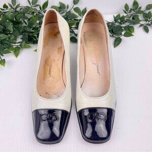 Salvatore Ferragamo Leather Creme &Black Color block Heel pumps 8.5