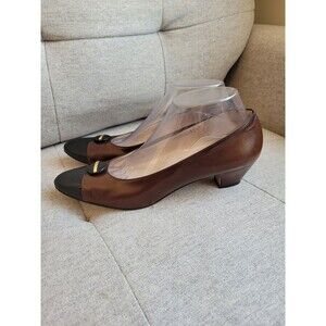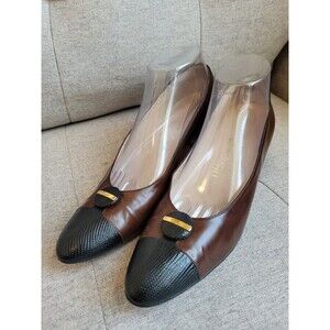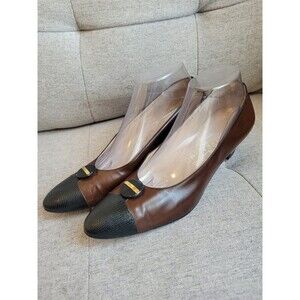 Salvatore Ferragamo Leather Pumps Colorblock Brown Classic Formal Size 10.5 AAAA