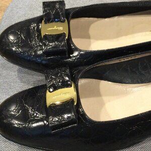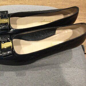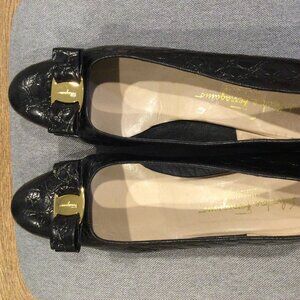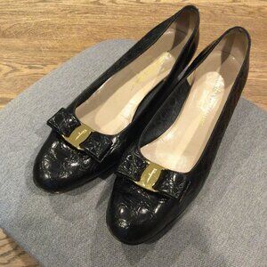 FARRAGAMO Vera Bow Black Leather Low Heels Pumps