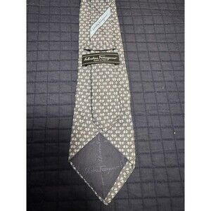 Salvatore Ferragamo Light Grey Tie, 100% Silk Made In Italy Blue And Grey Birds