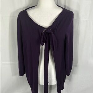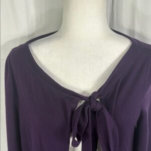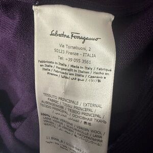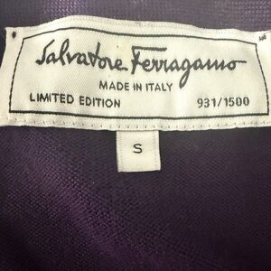 Elegant and rare Salvatore Ferragamo Limited Edition cardigan, number 931 of only 1500 made. Crafted in Italy from 100% virgin wool, this deep purple cardigan features a tie-front closure and a timeless, versatile design perfect for layering. A collectible piece for luxury fashion enthusiasts.